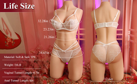 - 【Realistic Vaginal & Anal Tunnels】 This torso sex doll has a double tunnel design with a super stretchy vagina and a tight anus for you to relieve your member inside her and feel the most extraordinary sensations. The tunnels begin with a tight entry point that leads you into a series of narrow chambers made up of pleasure rings, gripping nubs, and ultra-tight passageways expertly designed to gently message your member with each thrust.